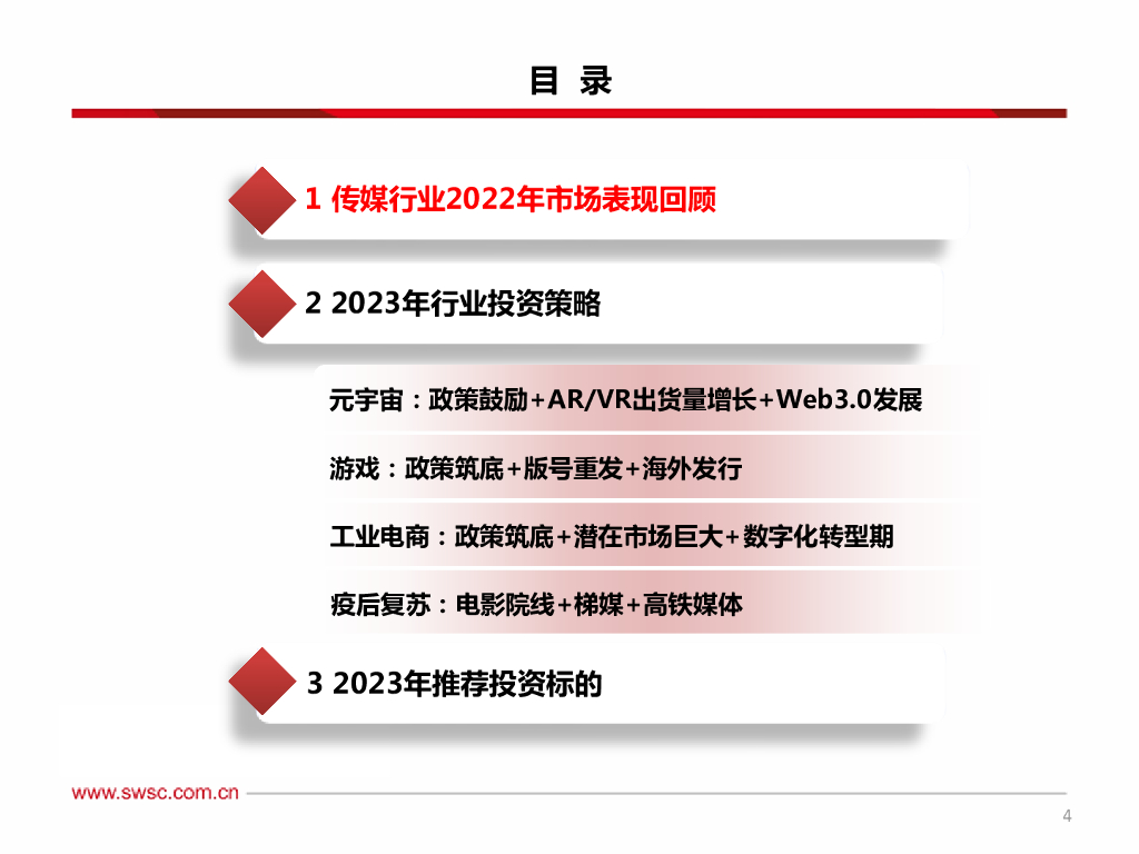 西南证券:传媒行业2023年投资策略:把握复苏与新科技主线,关注业绩估值双修复.pdf