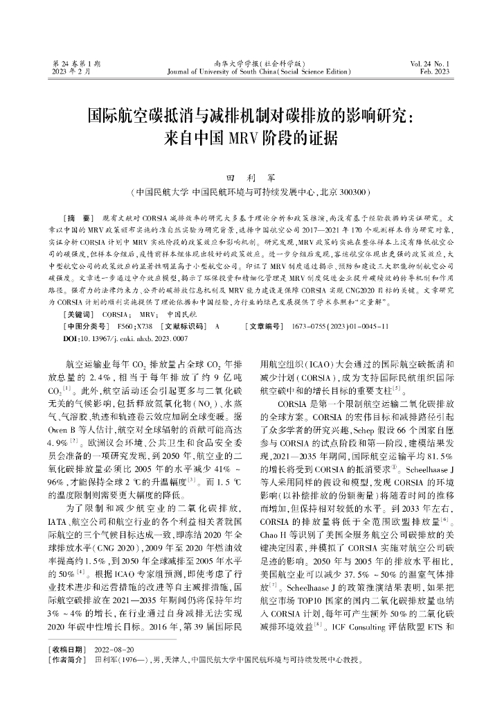 国际航空碳抵消与减排机制对碳排放的影响研究-来自中国MRV阶段的证据.pdf