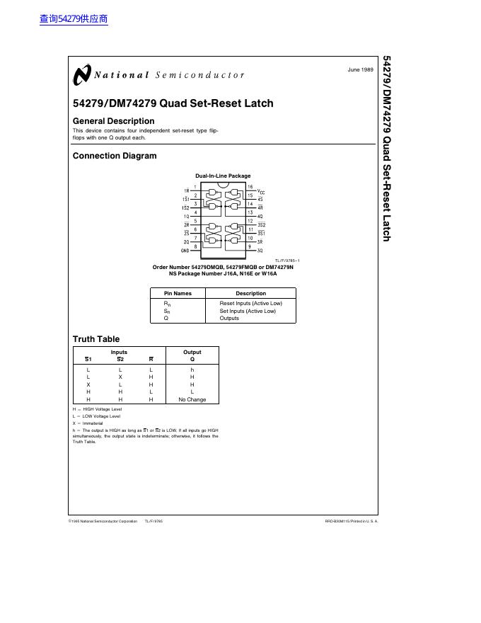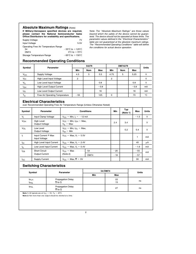 National Semiconductor 54279/DM74279 数据手册.pdf