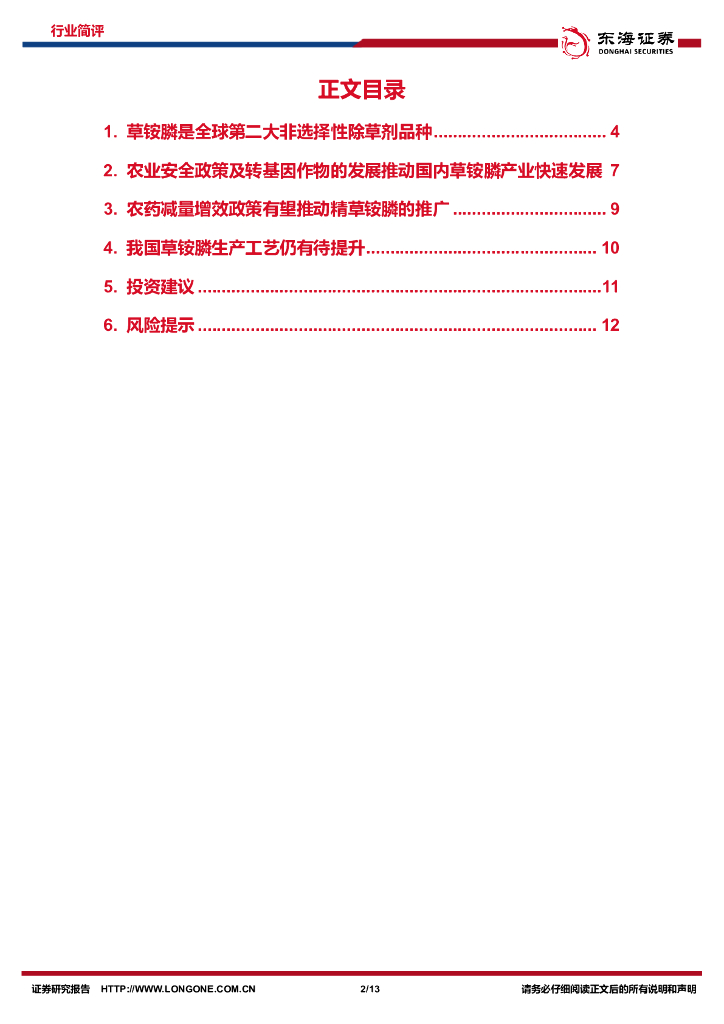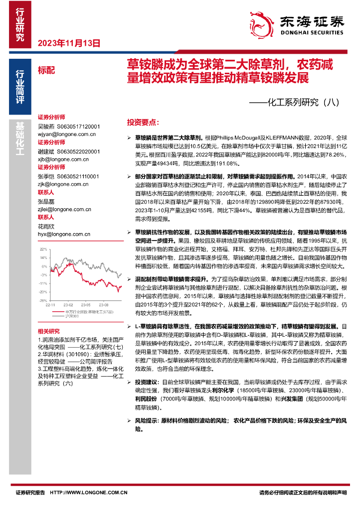 东海证券:化工系列研究(八):草铵膦成为全球第二大除草剂,农药减量增效政策有望推动精草铵膦发展.pdf