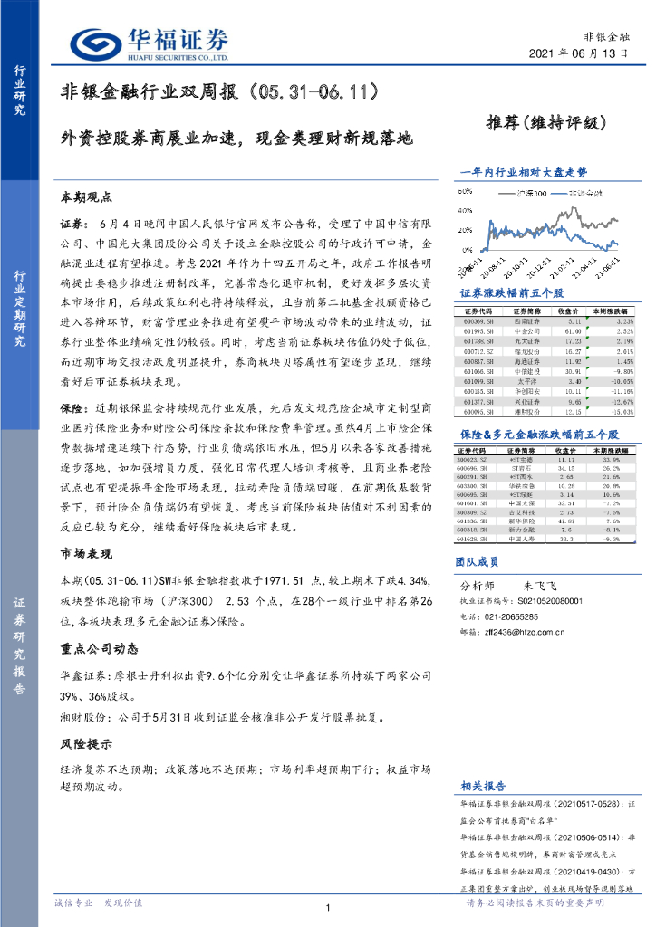 华福证券:非银金融行业双周报:外资控股券商展业加速,现金类理财新规落地.pdf