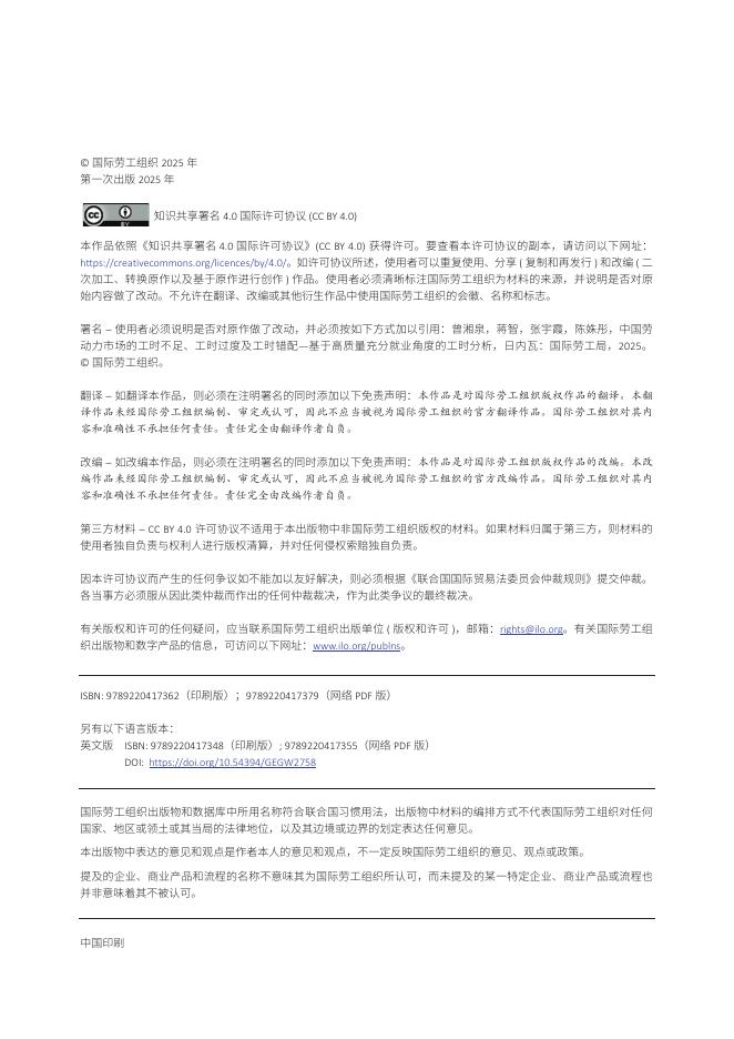国际劳工组织(ILO):2024年中国劳动力市场的工时不足、工时过度及工时错配-基于高质量充分就业角度的工时分析报告.pdf