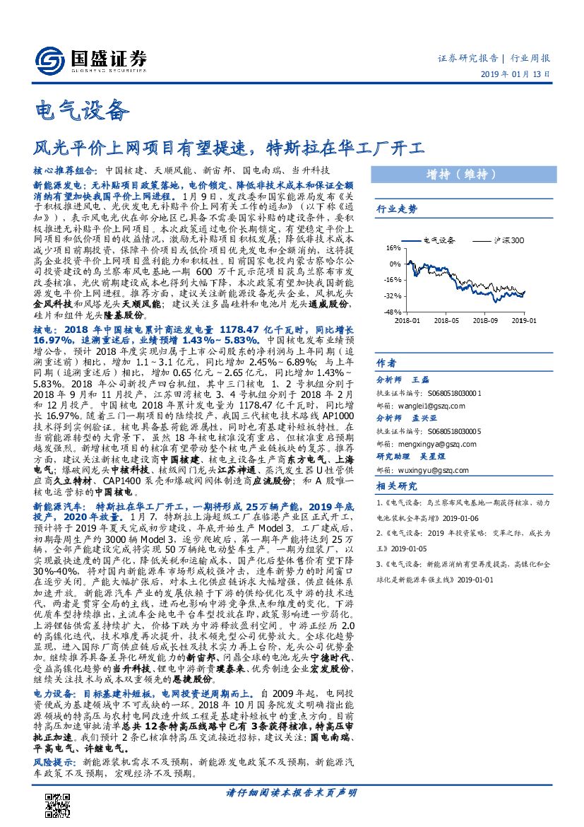 国盛证券:电气设备行业周报:风光平价上网项目有望提速,特斯拉在华工厂开工.pdf