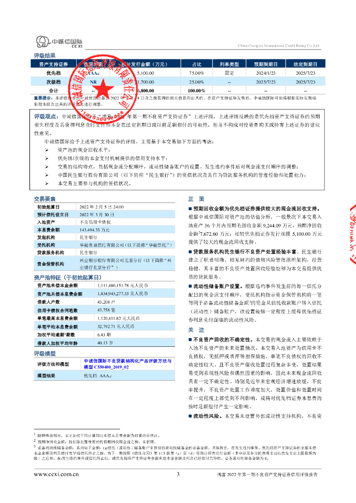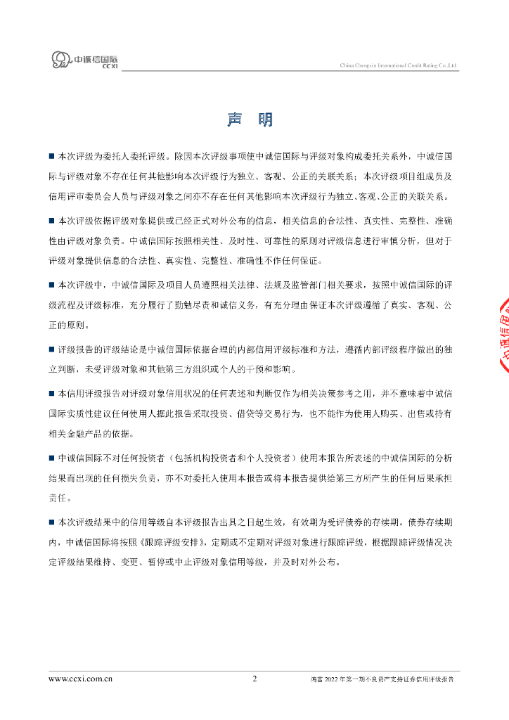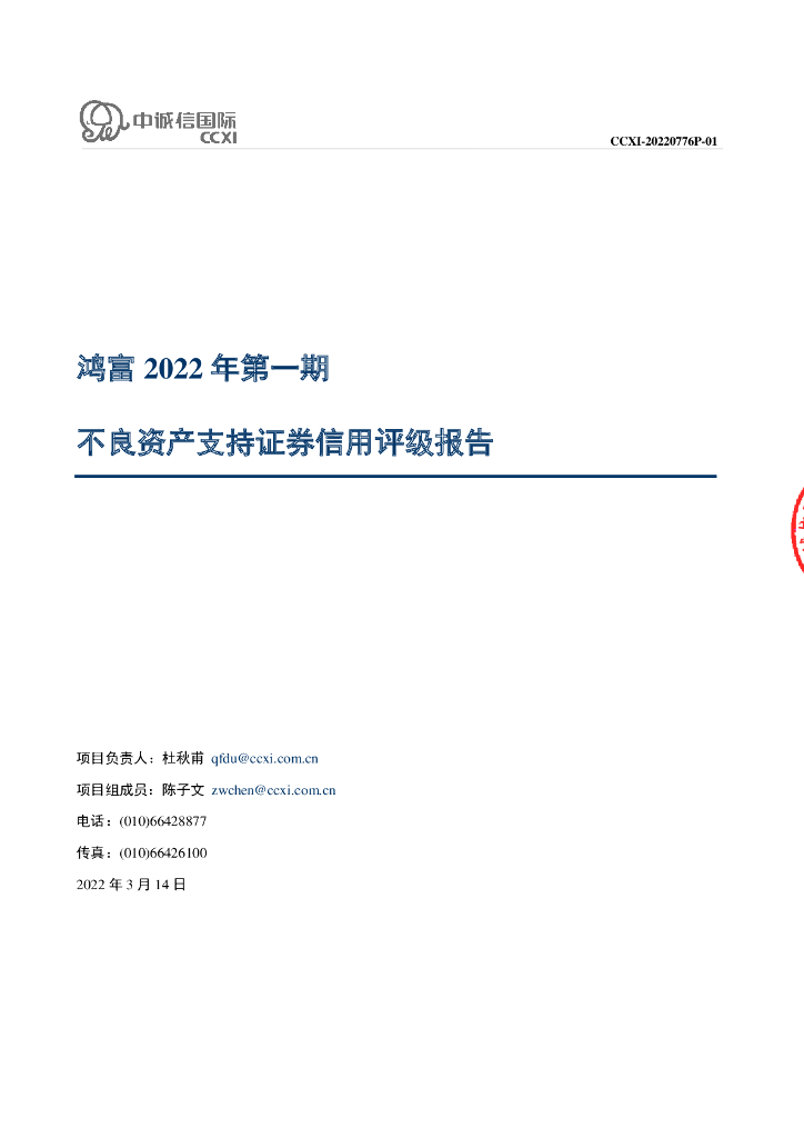 中诚信:鸿富2022年第一期不良资产支持证券信用评级报告(中诚信国际).pdf