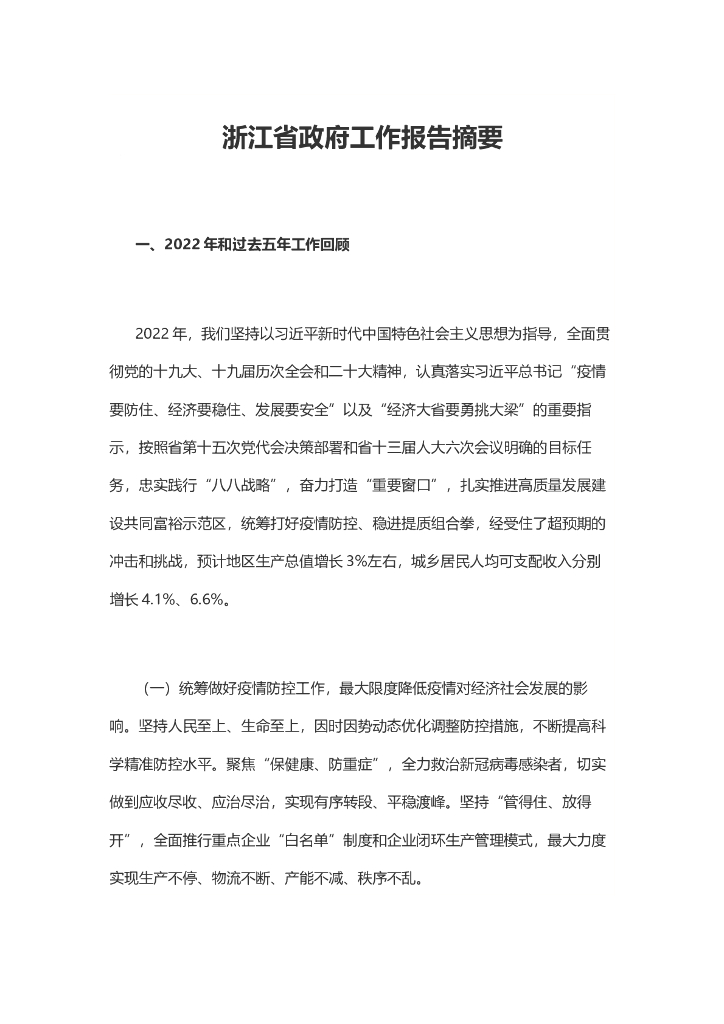 2023年浙江省政府工作报告摘要.doc