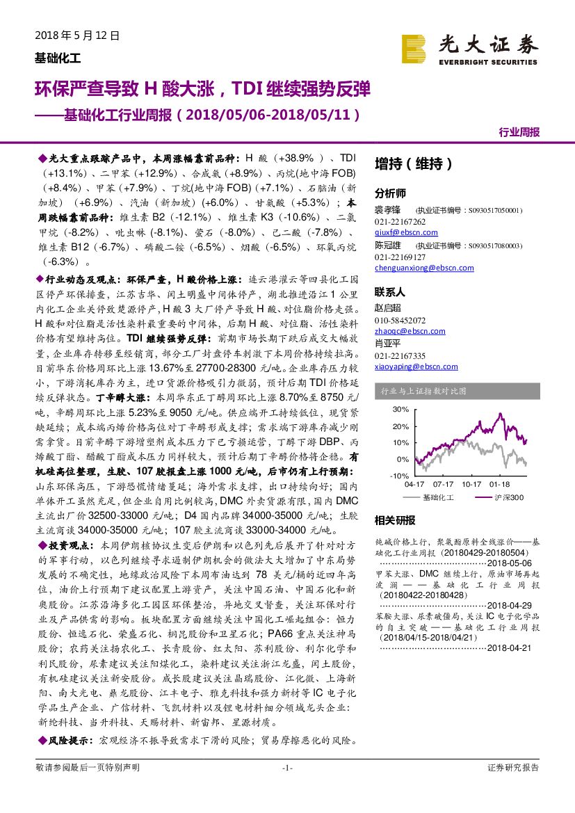 光大证券:基础化工行业周报:环保严查导致H酸大涨,TDI继续强势反弹.pdf