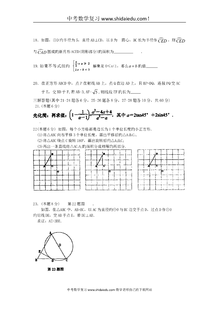 黑龙江哈尔滨松北区初中升学调研测试试题(三)-数学.doc