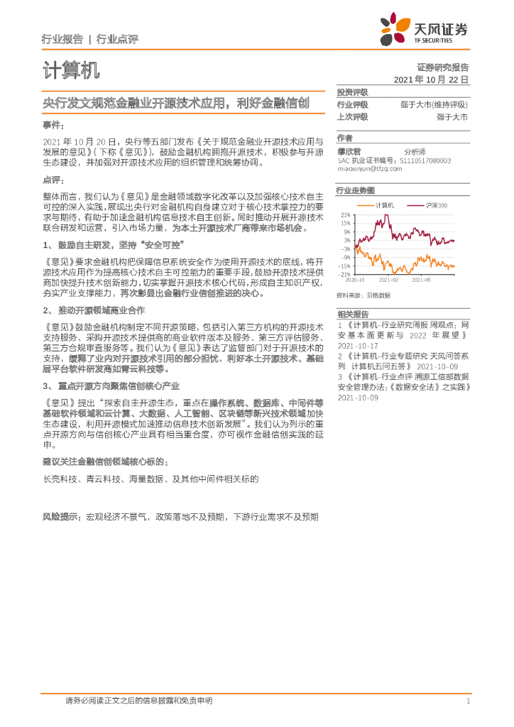 天风证券:计算机行业点评:央行发文规范金融业开源技术应用,利好金融信创.pdf