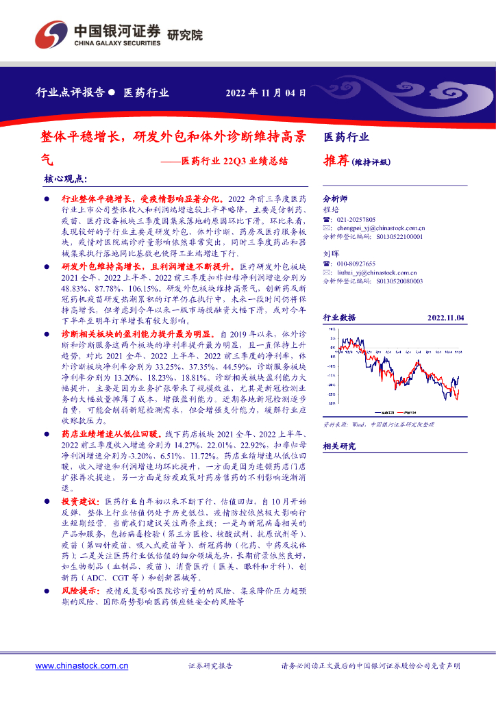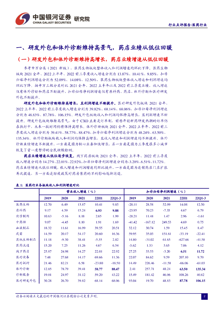 中国银河:医药行业22Q3业绩总结:整体平稳增长,研发外包和体外诊断维持高景气.pdf