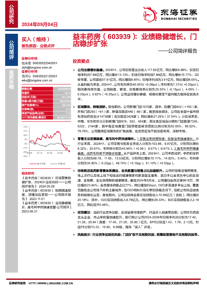 东海证券:益丰药房(603939)-公司简评报告:业绩稳健增长,门店稳步扩张.pdf
