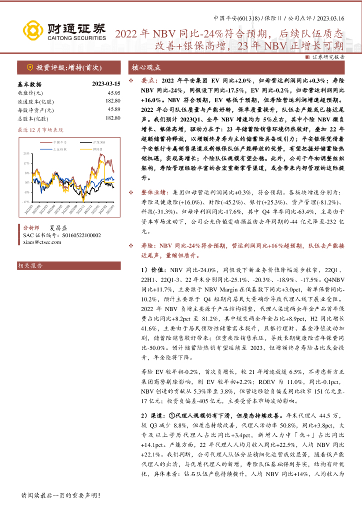 财通证券:中国平安(601318)-2022年NBV同比-24%符合预期,后续队伍质态改善+银保高增,23年NBV正增长可期.pdf