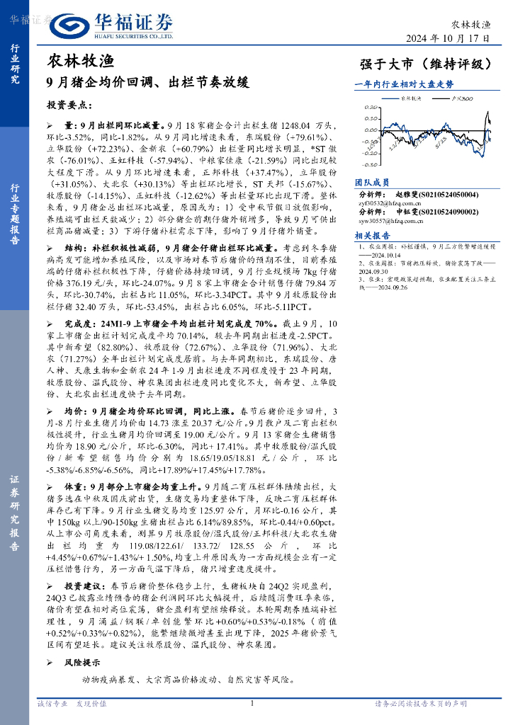 华福证券:农林牧渔行业专题报告:9月猪企均价回调、出栏节奏放缓.pdf