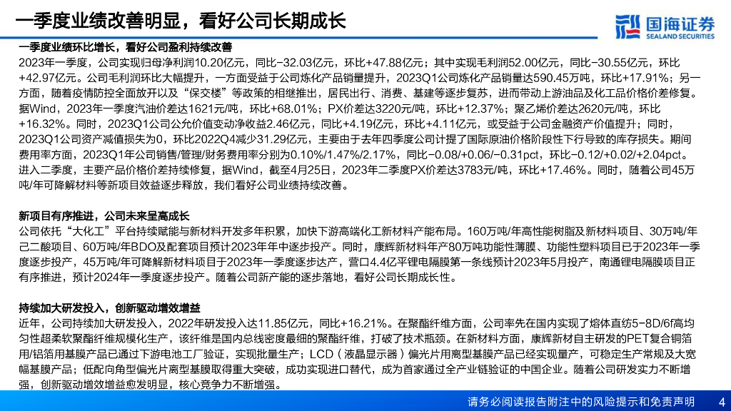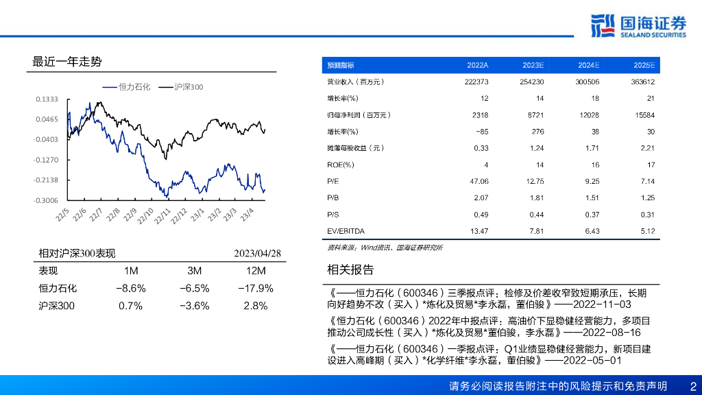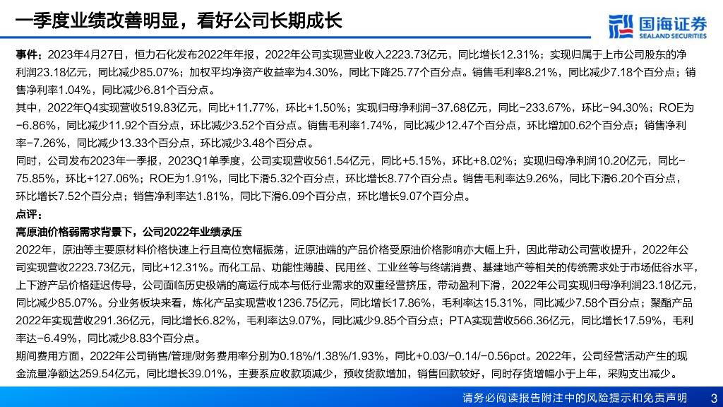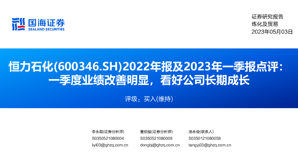 国海证券:恒力石化(600346)-2022年报及2023年一季报点评:一季度业绩改善明显,看好公司长期成长.pdf