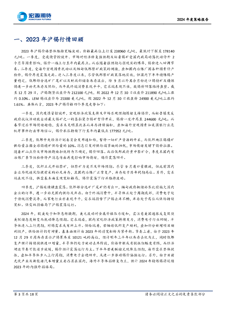宏源期货:2024年度策略报告:全球经济增长表现分化或使沪锡价格重心有所上移.pdf