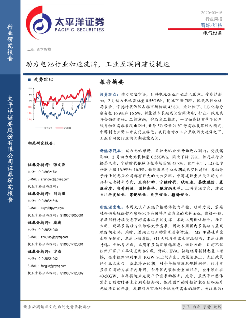 太平洋证券:电气设备行业周报:动力电池行业加速洗牌,工业互联网建设提速.pdf
