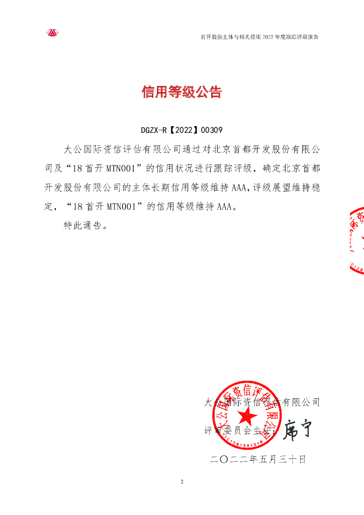 大公:北京首都开发股份有限公司主体与相关债项2022年度跟踪评级报告.pdf