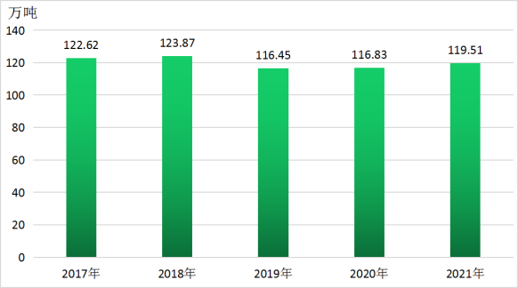图2 2017-2021年全市粮食产量