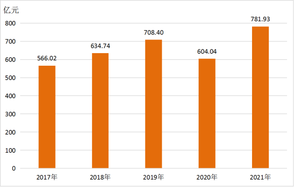 图3 2017-2021年全市社会消费品零售总额