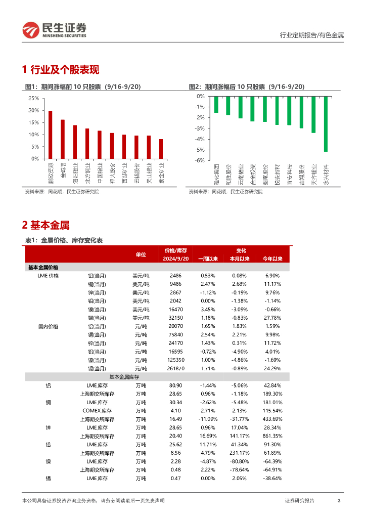 民生证券:有色金属周报:降息落地,金属价格普涨.pdf