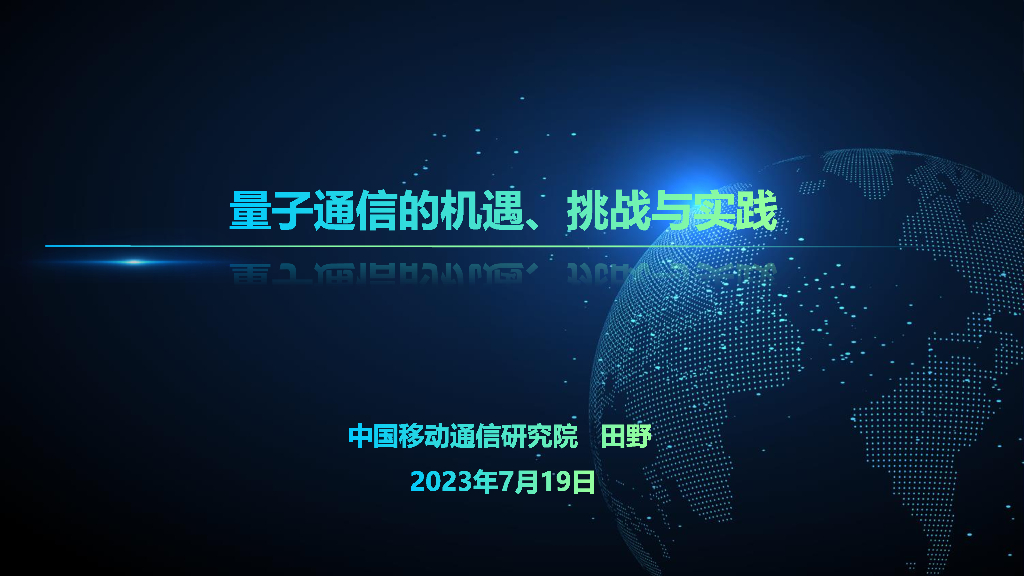中国移动通信研究院(田野):量子通信的机遇、挑战与实践.pdf