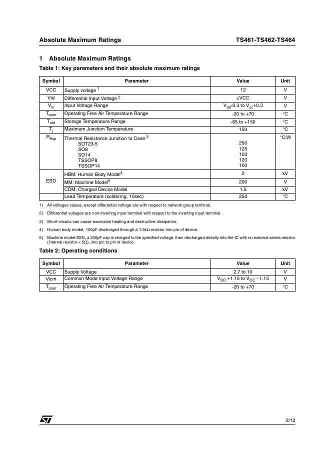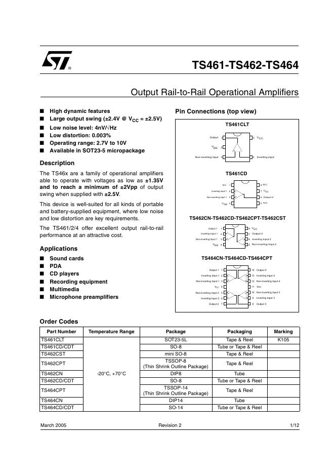 STMICROELECTRONICS -TS461-TS462-TS464 Output Rail-to-Rail Operational Amplifiers 数据手册.pdf