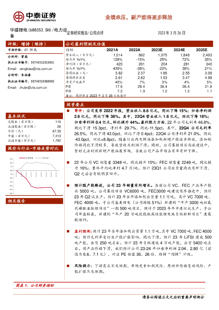 中泰证券:华盛锂电(688353)-业绩承压,新产能将逐步释放.pdf