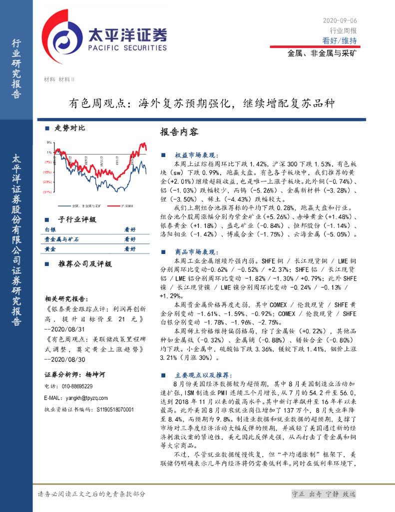 太平洋证券:有色周观点:海外复苏预期强化,继续增配复苏品种.pdf
