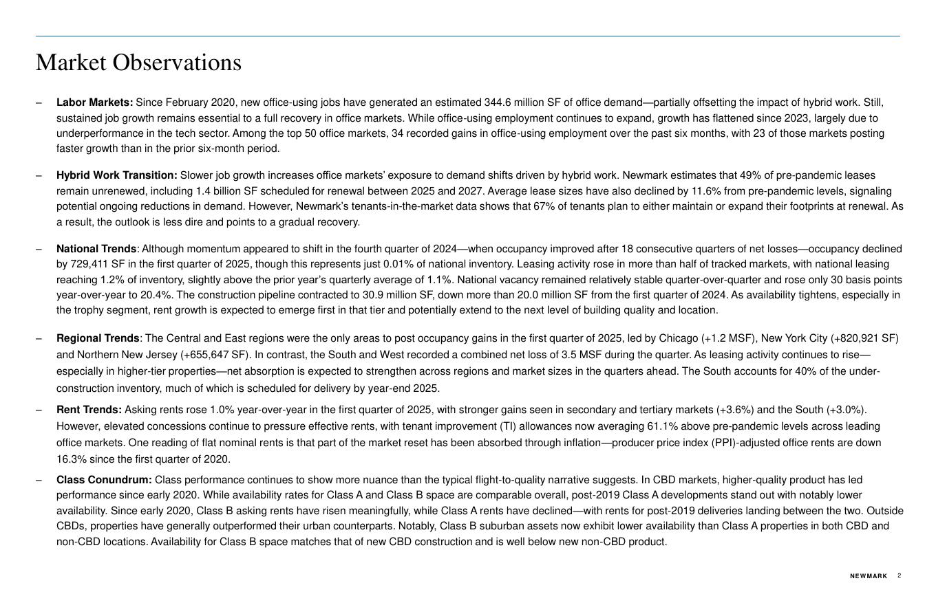 Newmark:2025年第一季度美国办公楼市场概述报告(英文版).pdf