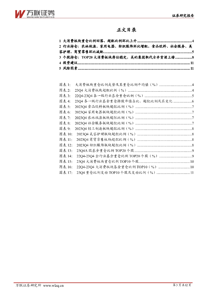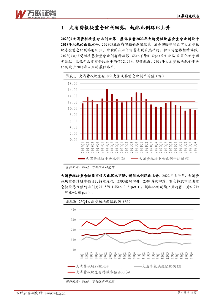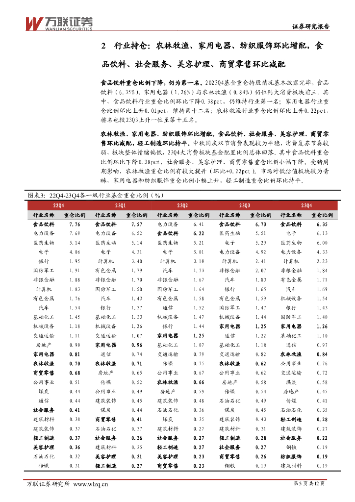 万联证券:大消费行业2023Q4基金持仓分析:大消费板块重仓比例回落,农林牧渔重仓比例提升明显.pdf