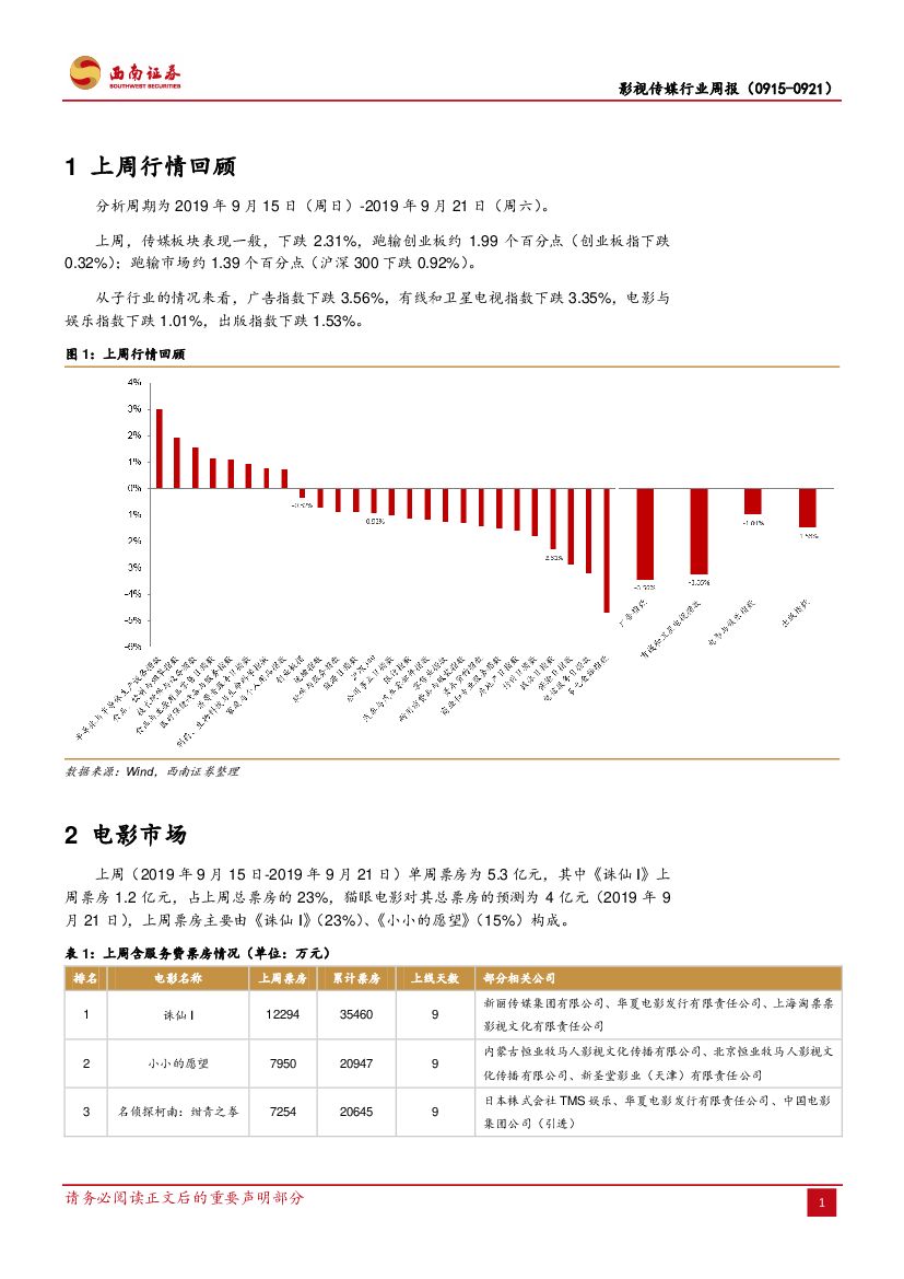 西南证券:影视传媒行业周报:国办发布体育新政,体育产业再获政策利好.pdf