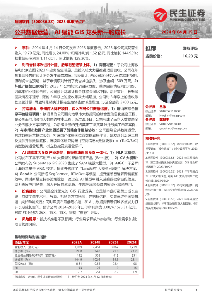 民生证券:超图软件(300036)-2023年年报点评:公共数据运营、AI赋能GIS龙头新一轮成长.pdf