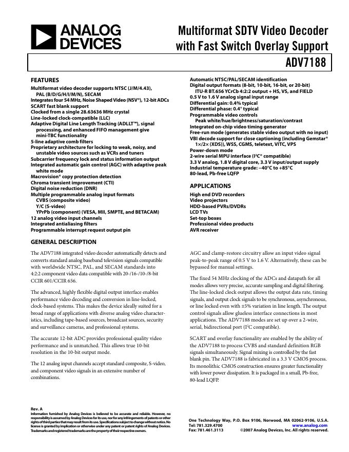 ANALOG DEVICES ADV7188 英文产品数据手册 Rev A.pdf