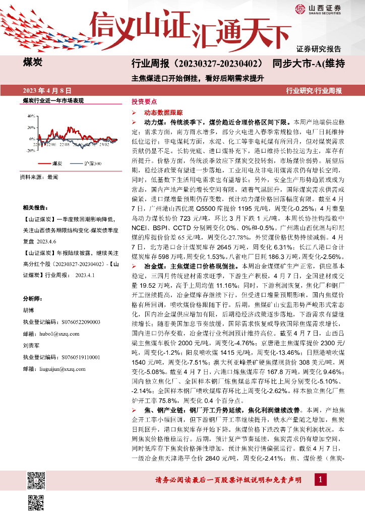 山西证券:煤炭行业周报:主焦煤进口开始倒挂,看好后期需求提升.pdf