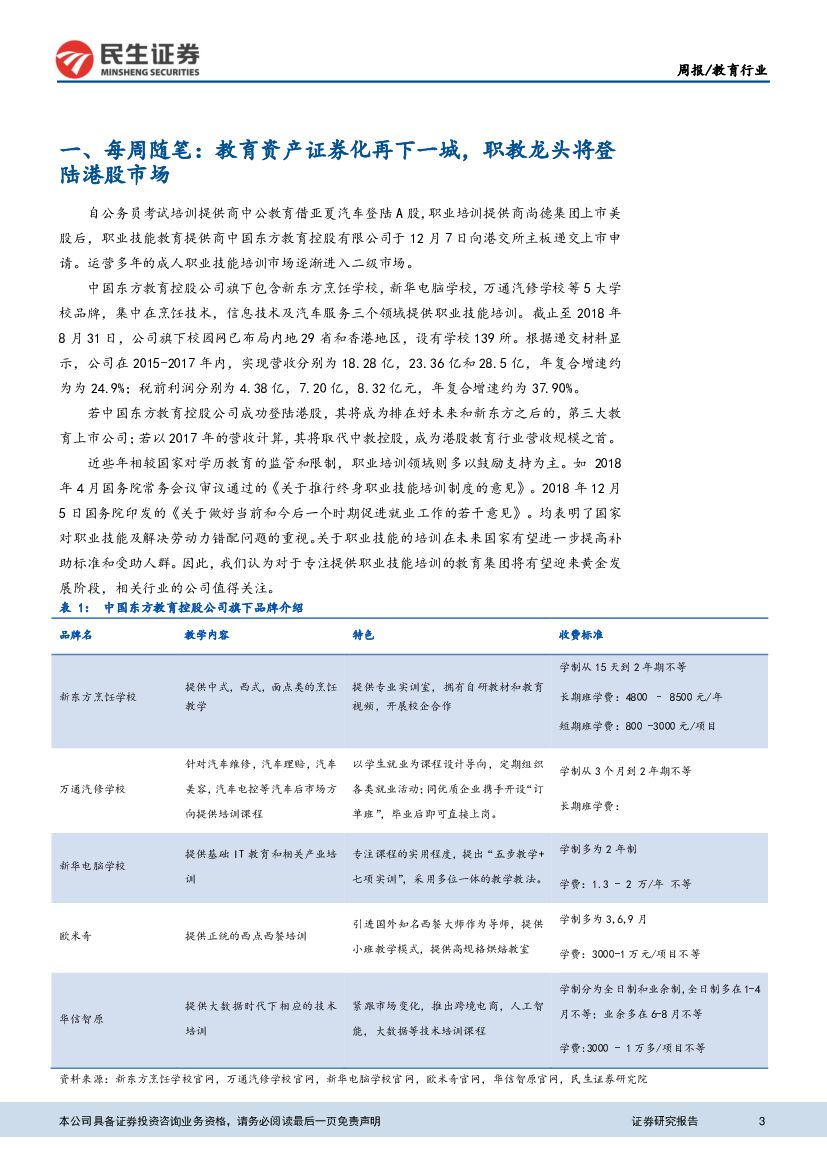 民生证券:教育行业周报:中国东方教育拟上市,职业教育资本化提速.pdf