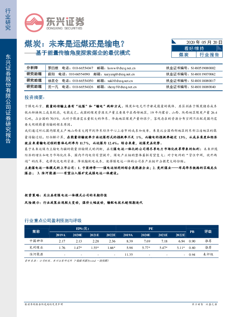 东兴证券:煤炭:未来是运煤还是输电?——基于能量传输角度探索煤企的最优模式.pdf