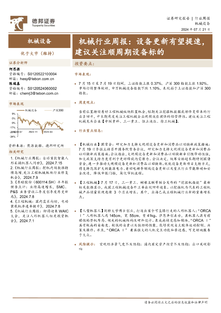 德邦证券:机械行业周报:设备更新有望提速,建议关注顺周期设备标的.pdf