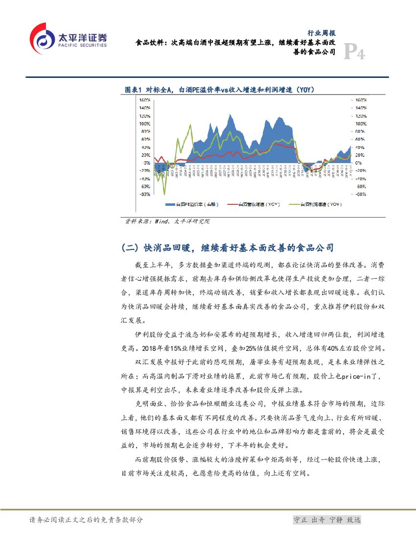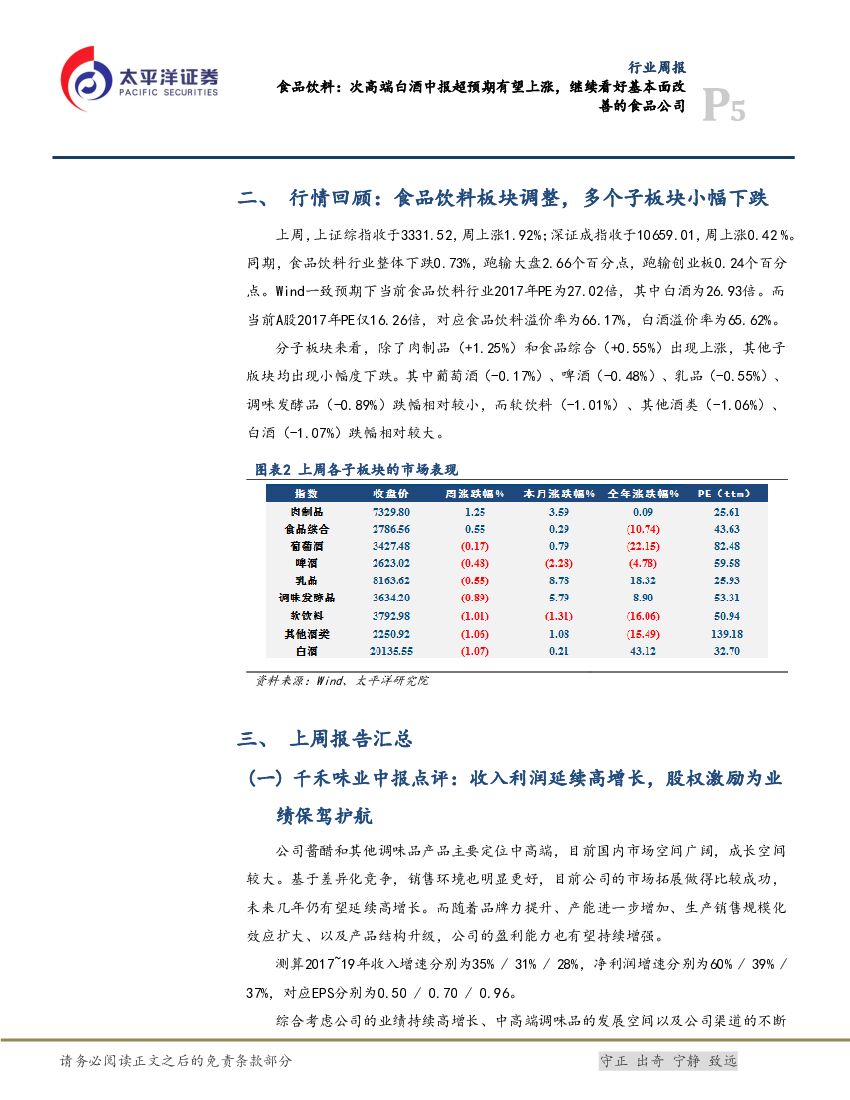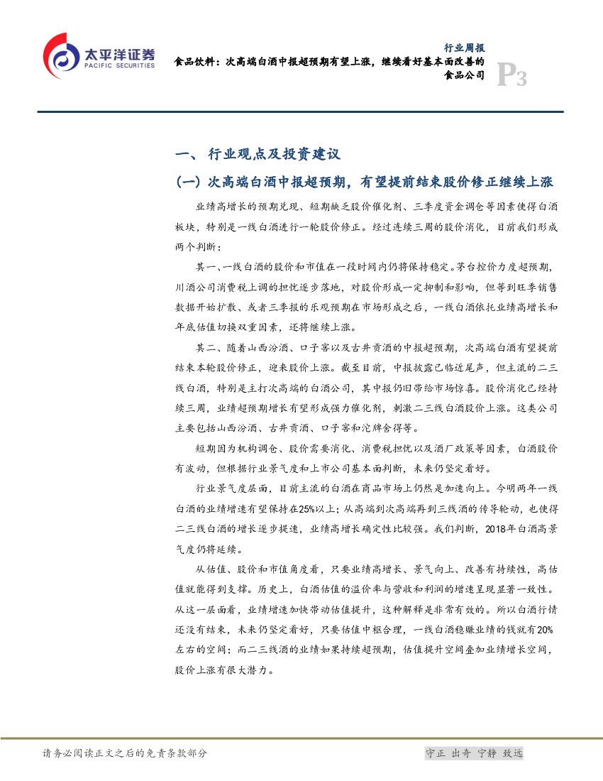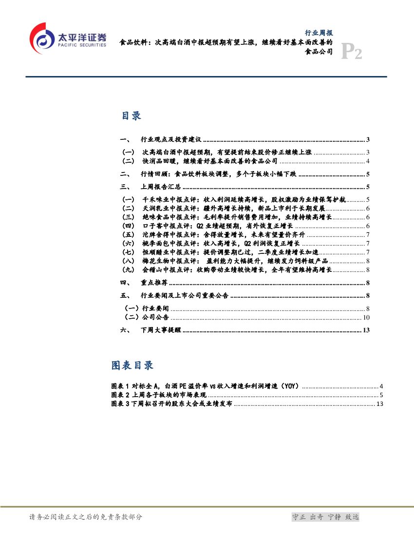 太平洋证券:食品饮料行业周报: 次高端白酒中报超预期有望上涨,继续看好基本面改善的食品公司.pdf