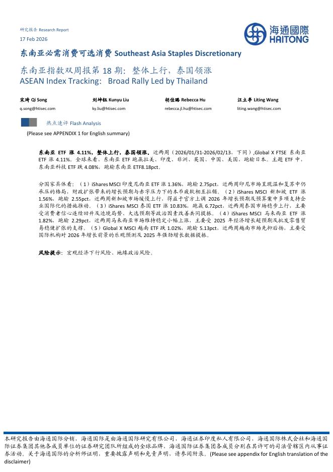 海通国际:东南亚指数双周报第18期:整体上行,泰国领涨-260226.pdf