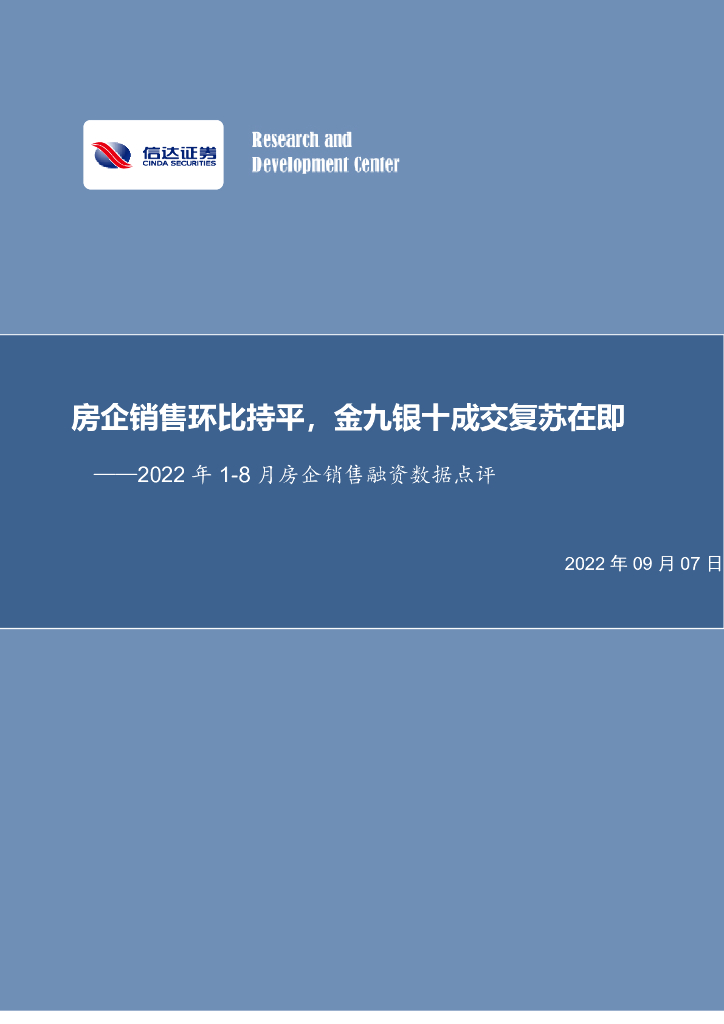 信达证券:2022年1-8月房企销售融资数据点评:房企销售环比持平,金九银十成交复苏在即.pdf