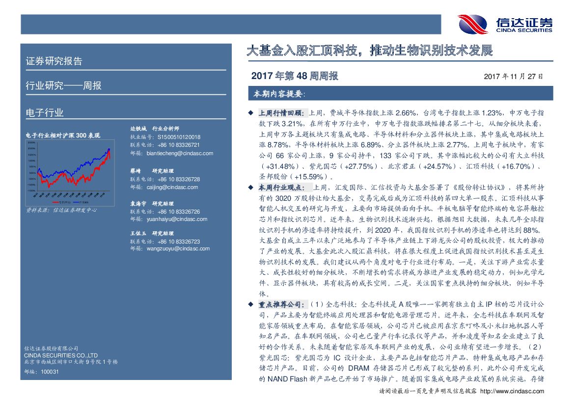 信达证券:电子行业周报:大基金入股汇顶科技,推动生物识别技术发展.pdf