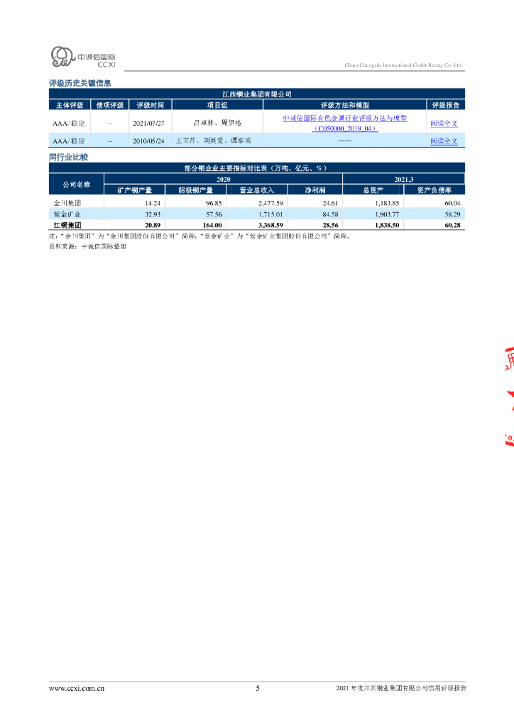 中诚信:江西铜业集团有限公司2021年度主体信用评级报告及跟踪评级安排.pdf