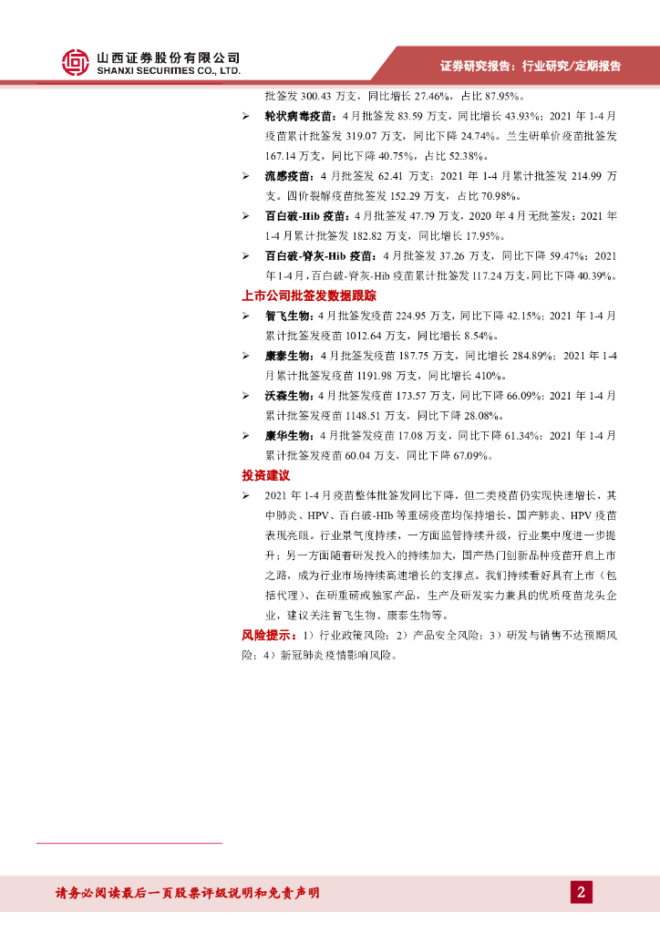山西证券:2021年 1-4月疫苗批签发数据跟踪:二类疫苗维持增长,国产大品种表现良好.pdf