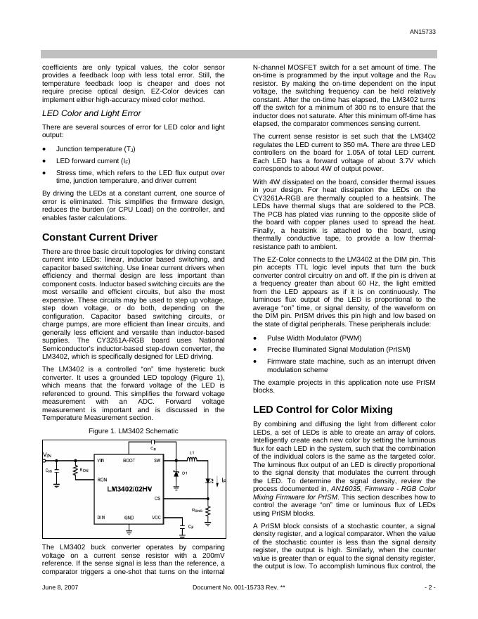 CYPRESS SEMICONDUCTOR AN15733 Power Management - RGB Color Mixing Hardware For EZ-Color LED Controllers 数据手册.pdf