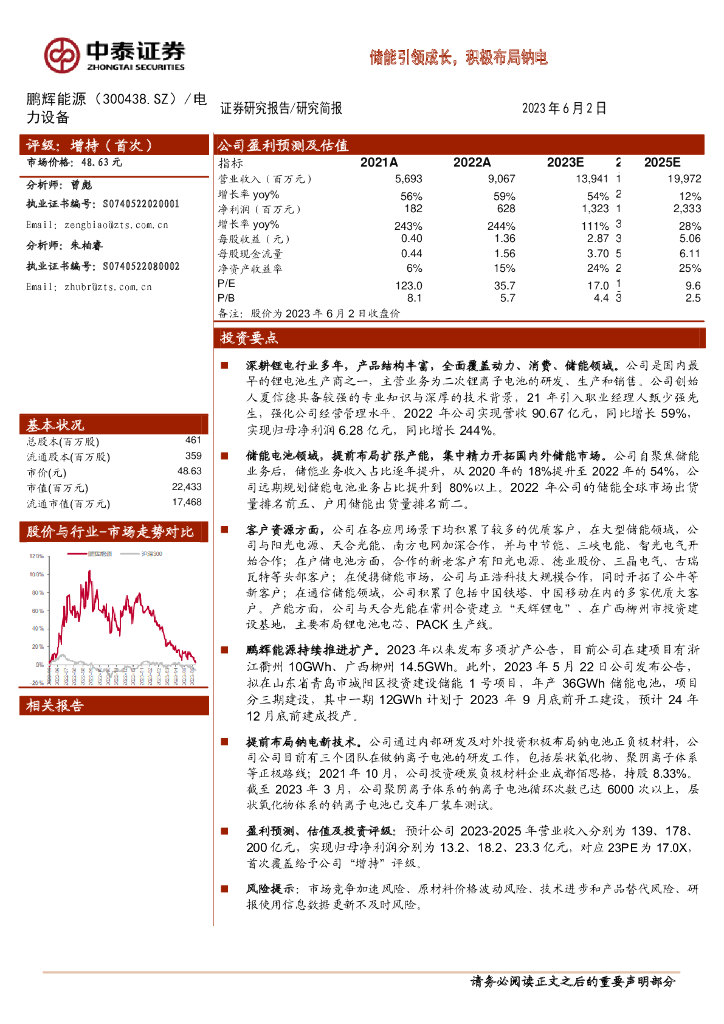 中泰证券:鹏辉能源(300438)-储能引领成长,积极布局钠电.pdf