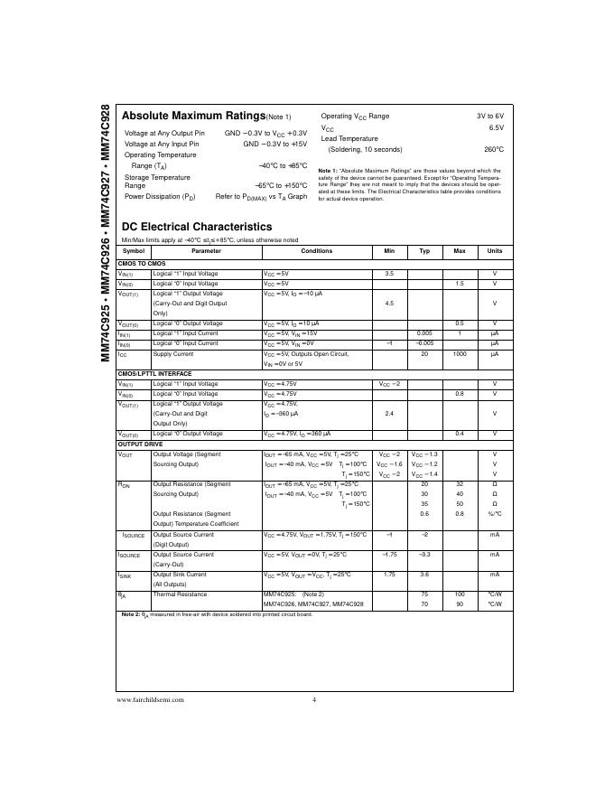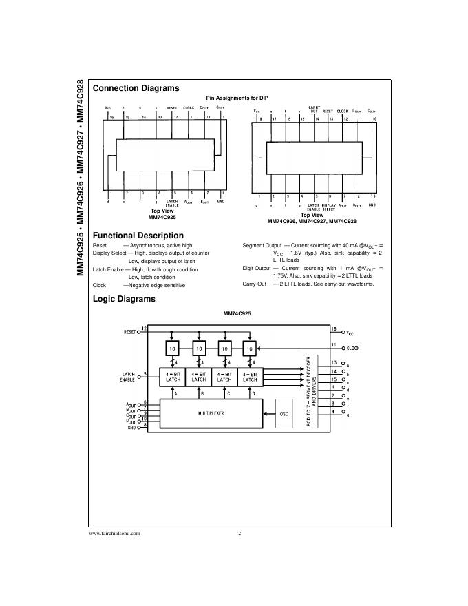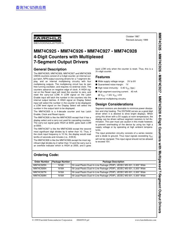 FAIRCHILD MM74C925 • MM74C926 • MM74C927 • MM74C928 4-Digit Counters with Multiplexed 7-Segment Output Drivers 数据手册.pdf