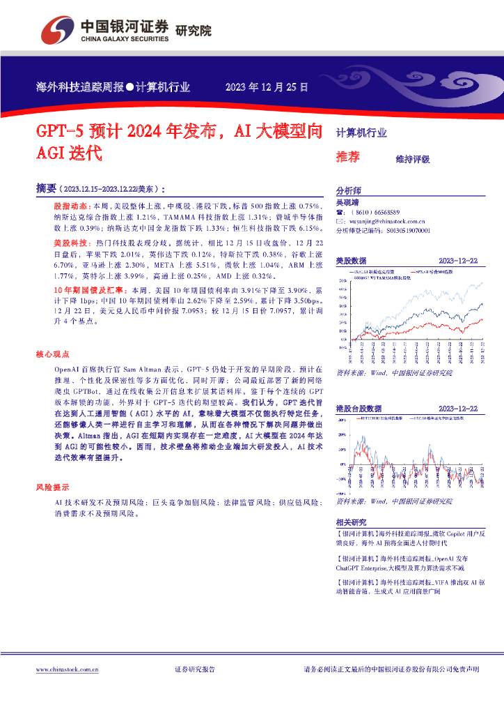 中国银河:计算机行业海外科技追踪周报:GPT-5预计2024年发布,AI大模型向AGI迭代.pdf
