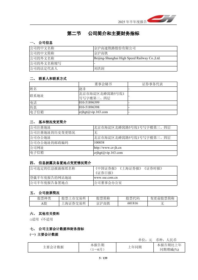 601816-京沪高铁:京沪高速铁路股份有限公司2025年半年度报告.pdf