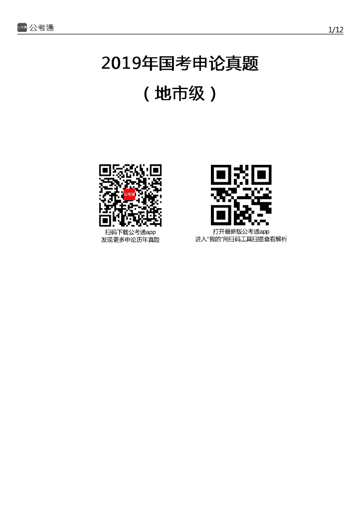 2019年国家公务员考试申论真题及答案(地市级).pdf