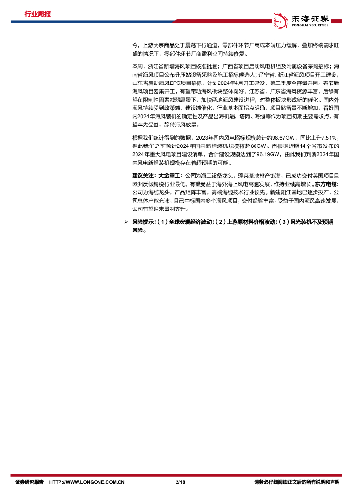 东海证券:新能源电力行业周报:光伏电池、组件趋势向上,海风项目密集开工推动板块向好.pdf