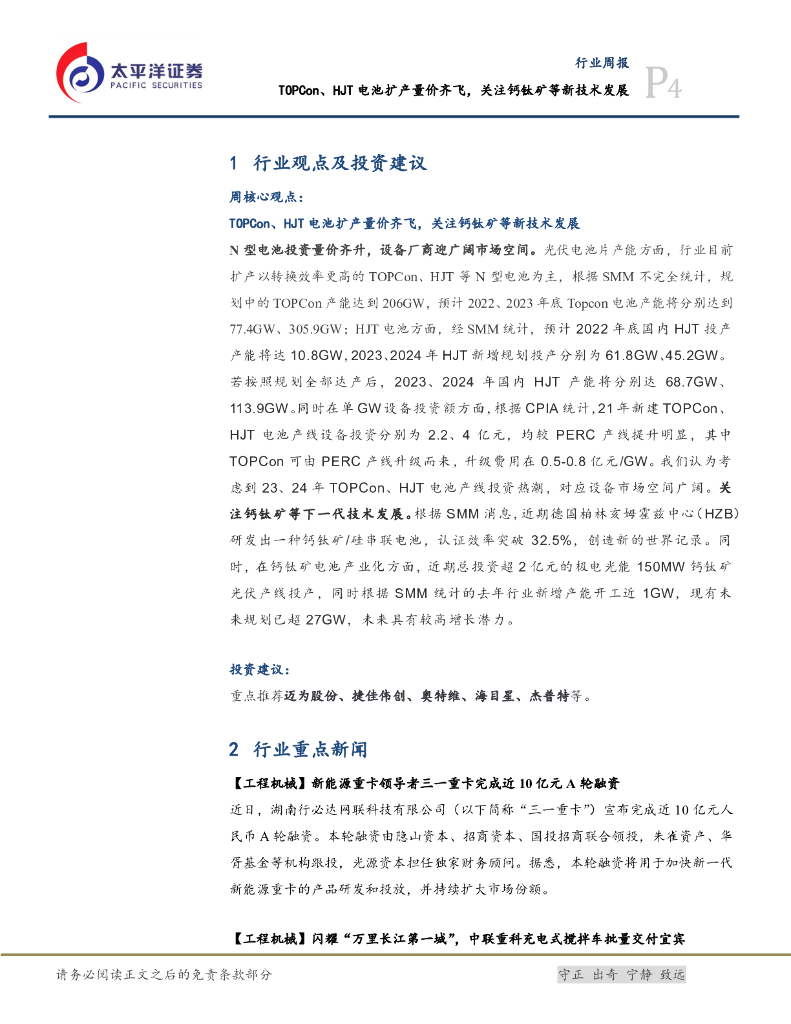太平洋证券:机械设备行业周报:TOPCon、HJT电池扩产量价齐飞,关注钙钛矿等新技术发展.pdf